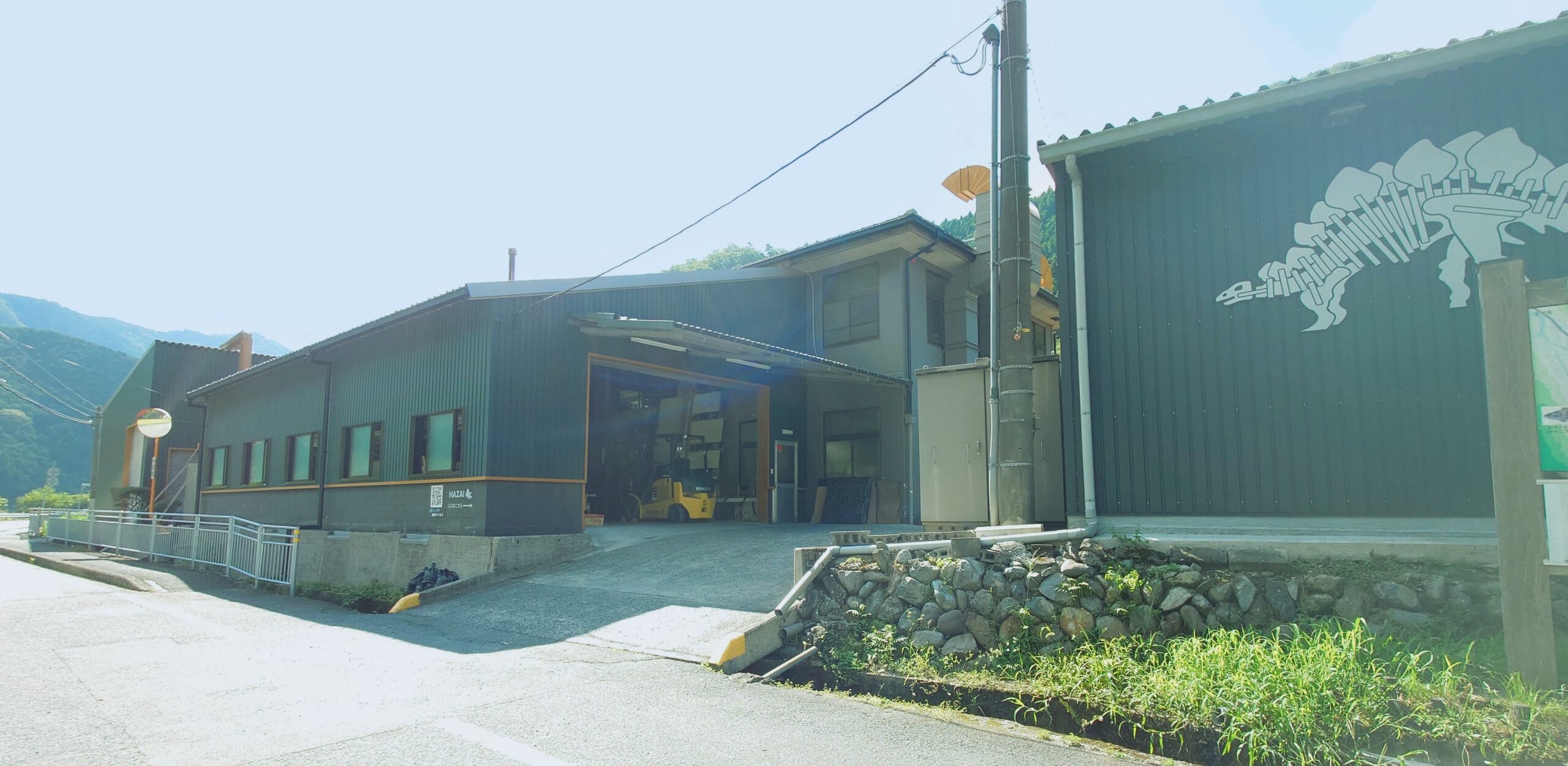 国道29号線沿、グリーンとオレンジの社屋と恐竜の骨が目印!