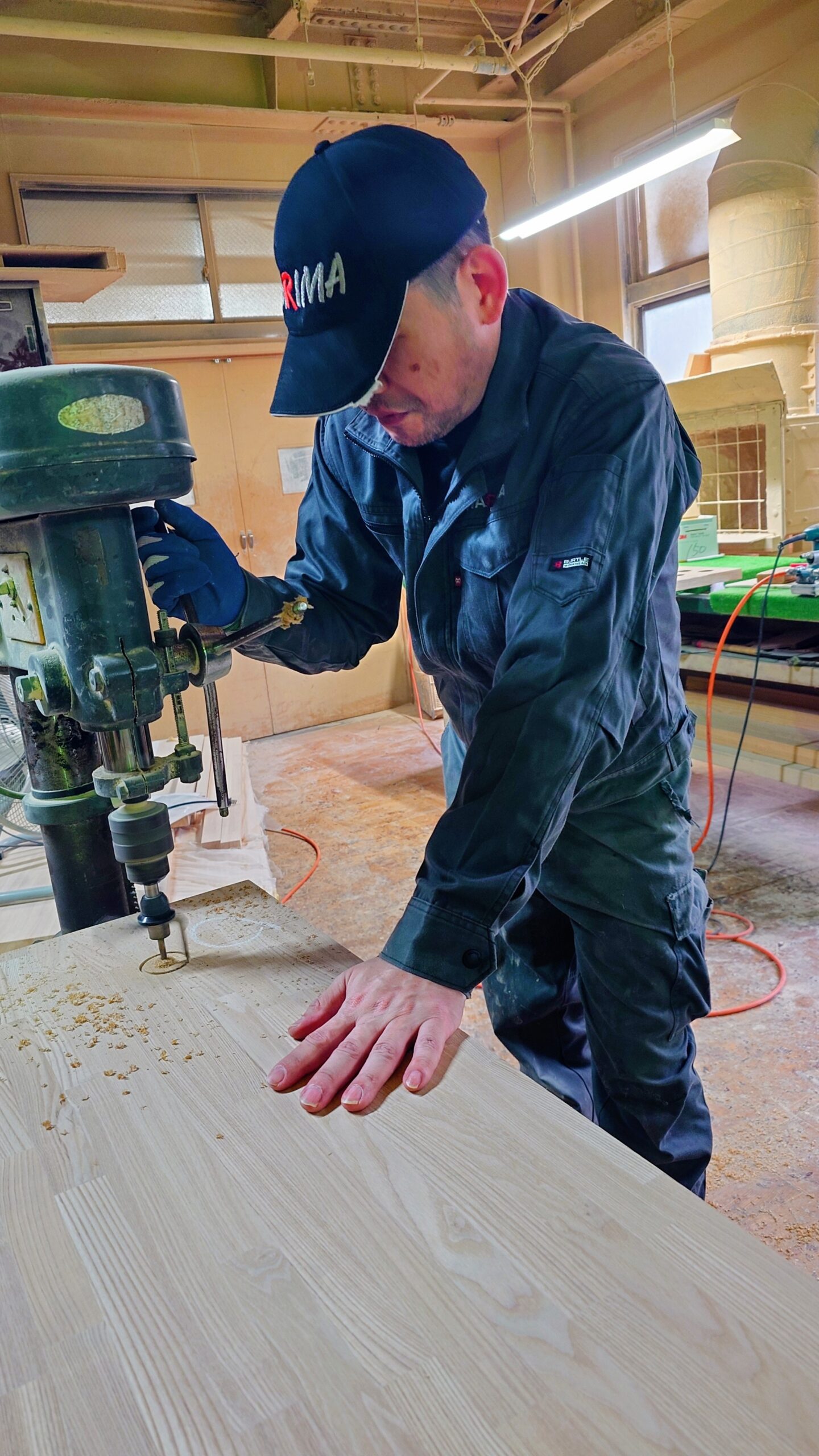 はじめは先輩社員の補助をしながら簡単な作業から覚えます。木材のカット・研磨から始め、機械オペレーターや塗装、調色などのスキルを身に着けていきます。塗料の調色ができるようになると、お客様の希望の色にばっちり合わせることができ気持ちがいいです。